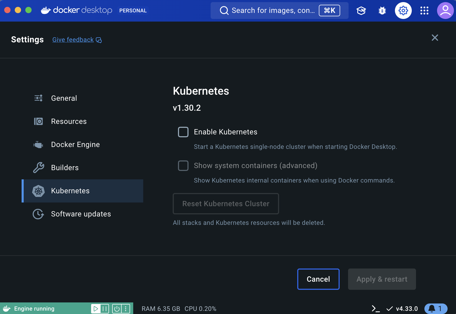 먼저 docker desktop 에서 바로 k8s 구축이 가능하다.