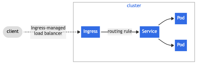Ingress는 클러스터 외부에서 내부 서비스로 HTTP, HTTPS 요청을 라우팅하는 규칙을 정의한다.