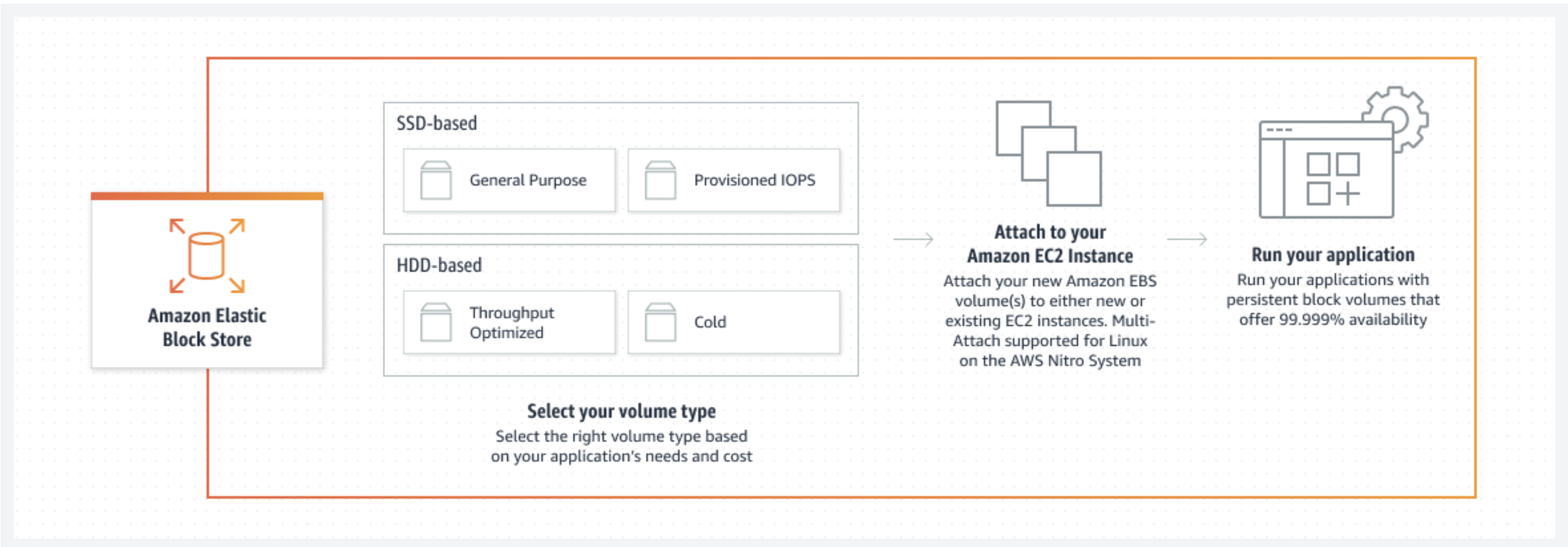 한번에 하나의 인스턴스에 mount 될 수 있으며 특정 Availability zone에 생성된다.