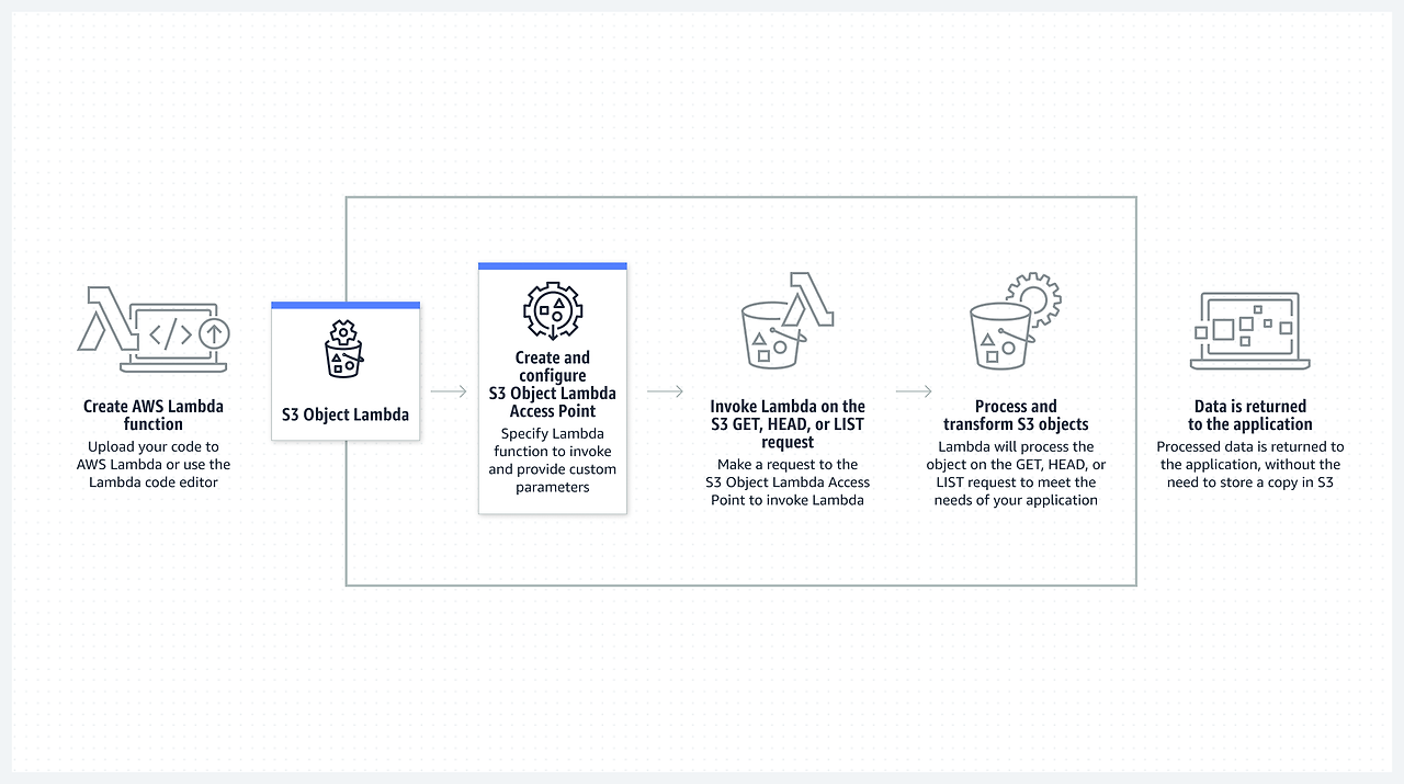 S3 GET, HEAD, LIST 요청에 람다 코드를 추가해서 데이터가 반환될때 로직이 적용된 데이터가 반환된다.